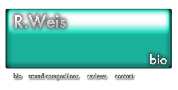 R. WEISSOUND COMPOSITIONSBIOR. Weis began his creative career in 1982 after moving from Pittsburgh, PA to New York City (NYC). His earliest expressions took the form of poetry and monologues that were heard at venues such as The Poetry Project, La MaMa, and on WBAI FM Pacifica Radio. At that time, Weis also began experiments manipulating pre-recorded sounds on cassette tape, and began assembling sound collages to be presented with his creative writing. Eventually, his focus shifted away from writing and moved enthusiastically toward the idea of composing with manipulated sound. He began working on a sampler in 1990 and embraced the discipline of composing exclusively with samples of original sounds. A series of collaborations began, and resulted in sound scores for film, visual art, and dance. These collaborations were presented at many of New York City’s downtown venues, including Performance Space 122, Danspace Project, and the gallery Art et Industrie. His CD “Mystery of the Egg” was completed in 1994 and was heard on experimental radio programs in the U.S. and Europe. That same year, he collaborated with photographer Arthur Tress and composed the sound score for the museum installation “Requiem for a Paperweight.” “Requiem” was originally presented at University Art Museum, California State University Long Beach. It has since traveled to The Bridgewater/Lustberg Gallery in NYC, to German museums including The Ludwig Forum – Stadt Aachen, and in slide-show form at the 1994 CMJ Music Marathon in NYC. The sound score for “Requiem” was also heard as part of Arthur Tress’ 2001 retrospective “Fantastic Voyage, Photographs 1956-2000” at The Corcoran Gallery of Art in Washington, DC. After 16 years in NYC’s East Village, Weis moved to the California desert. For three years, he worked on a composition called “noitatu MovE oveR” which is a meditation on the structures of the universe. The 29-minute composition is organized like the DNA double helix, and is made from only 6 original samples: 4 to represent the 4 base components of DNA; 1 to represent whole numbers; and 1 to represent prime numbers. After such a long immersion in this cosmic project, Weis was delighted to accept an invitation from The Savannah College of Art & Design to compose the light-hearted “Dog Choir” for the museum exhibit “Pour l’Amour des Chiens” at the Mona Bismarck Foundation, Paris, 2003. He returned to Pittsburgh in 2006. In 2008 he completed “Victoriana,” a 1-hour composition based on sounds made by his 19th Century house. “Victoriana” premiered in the 2009 Gestures 12 exhibit at Pittsburgh’s Mattress Factory Art Museum. In 2010, “Victoriana” was presented at Pittsburgh Technology Council’s DATA Event where it won the Gateway to the Arts Award. In 2011, Weis released “Excitable Audible,” a CD of 14 songs of manipulated sound. The songs were created from samples of commonplace, everyday sounds including trash hitting the trash can, plastic lids spinning, kitchen dishes rattling, and the dog’s ball bouncing, among others. All 14 songs from “Excitable Audible” have been broadcast on multiple US radio stations and tracks were heard on London’s “Resonance FM.” Weis’ newest project is “Parrot & Paperback,” a four-part composition created from samples of sounds made by “Congo,” an African Grey Parrot, paired with the sound of a paperback book (about the Congo jungle) dropping on the floor. “Parrot & Paperback” has been heard on many US radio stations including WFMU (named the “new release of the day”), WPKN (named a “favorite of the week”), KAOS, KUNM, WMUA, WZBC, as well as on London’s Resonance FM. “Mystery of the Egg,” “Excitable Audible” and “Parrot & Paperback” are all available from CD Baby and its Digital Distribution Partners including iTunes. http://www.cdbaby.com/Artist/RWeis Contact Information: R. Weis |